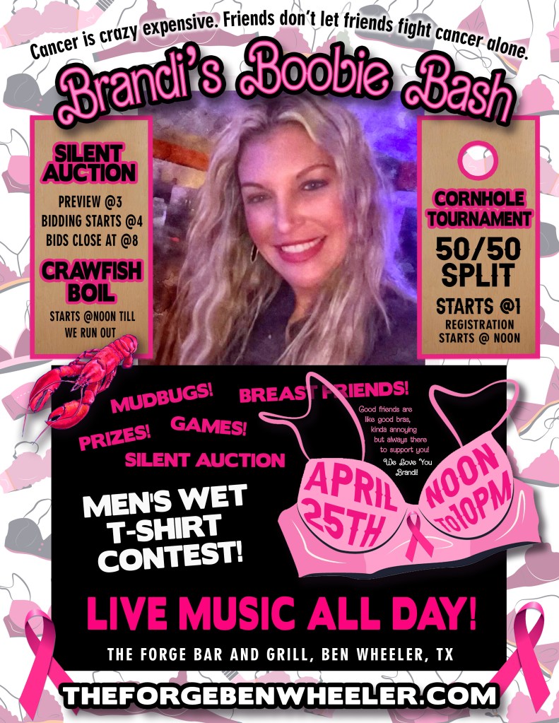 We are coming together on April 25th at Forge Bar and Grill in Ben Wheeler, Texas, to help offset these costs and allow Brandi to focus her energy where it matters most: healing.
